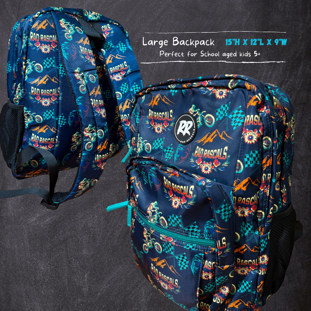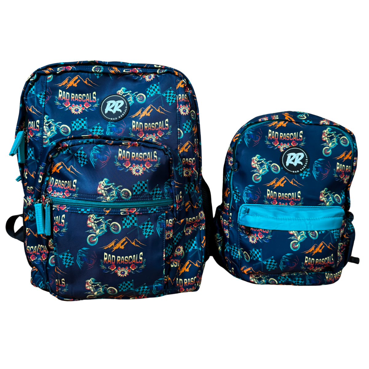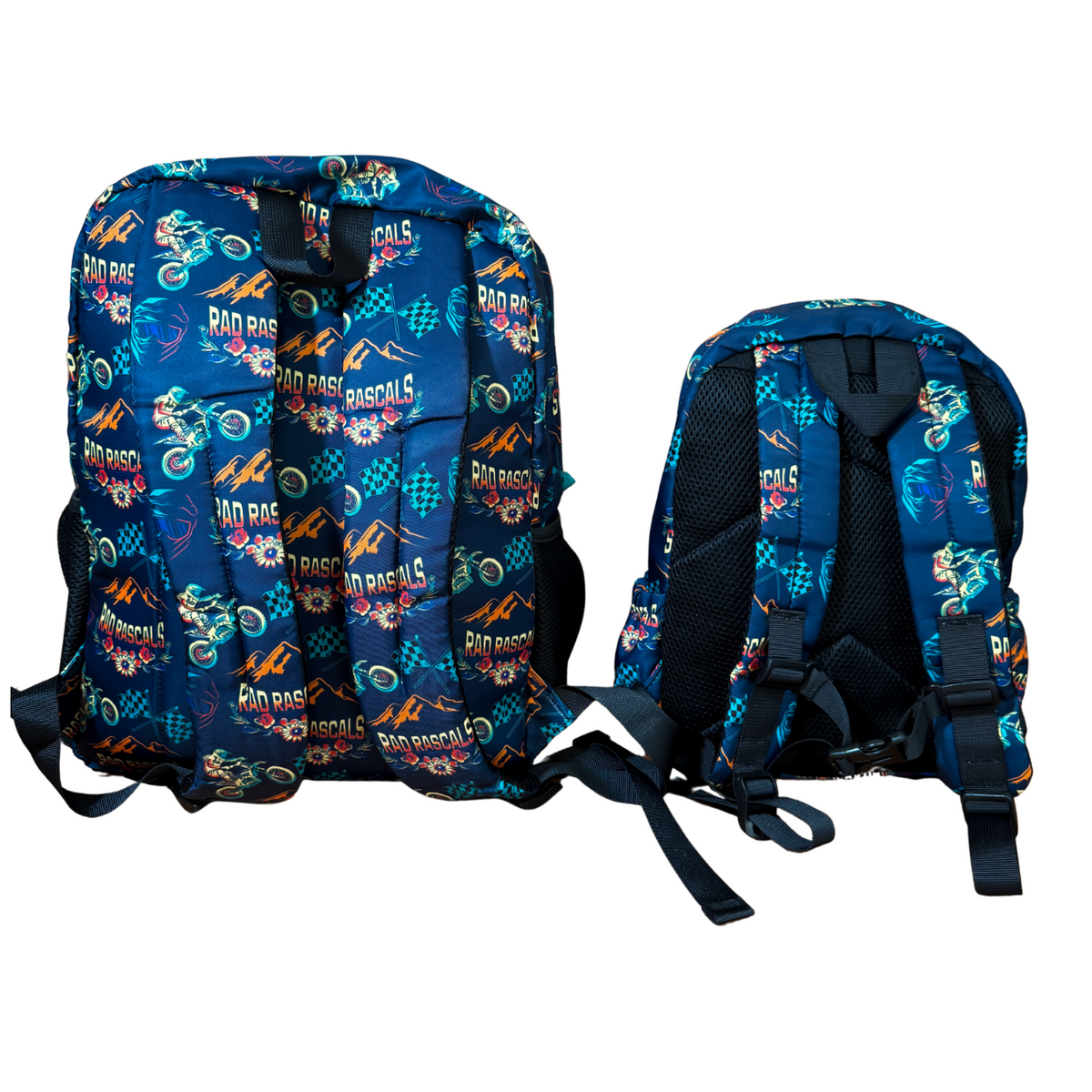 Standard Backpacks: Built for school days, track days, and every wild ride in between. This isn’t your average backpack, it’s moto-ready, chaos-proof, and loaded with attitude. Designed for little rascals who need room for snacks, gear, and whatever treasures they pick up along the way.