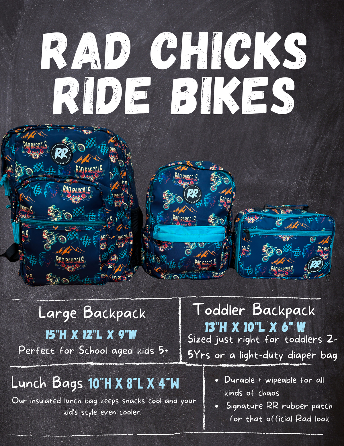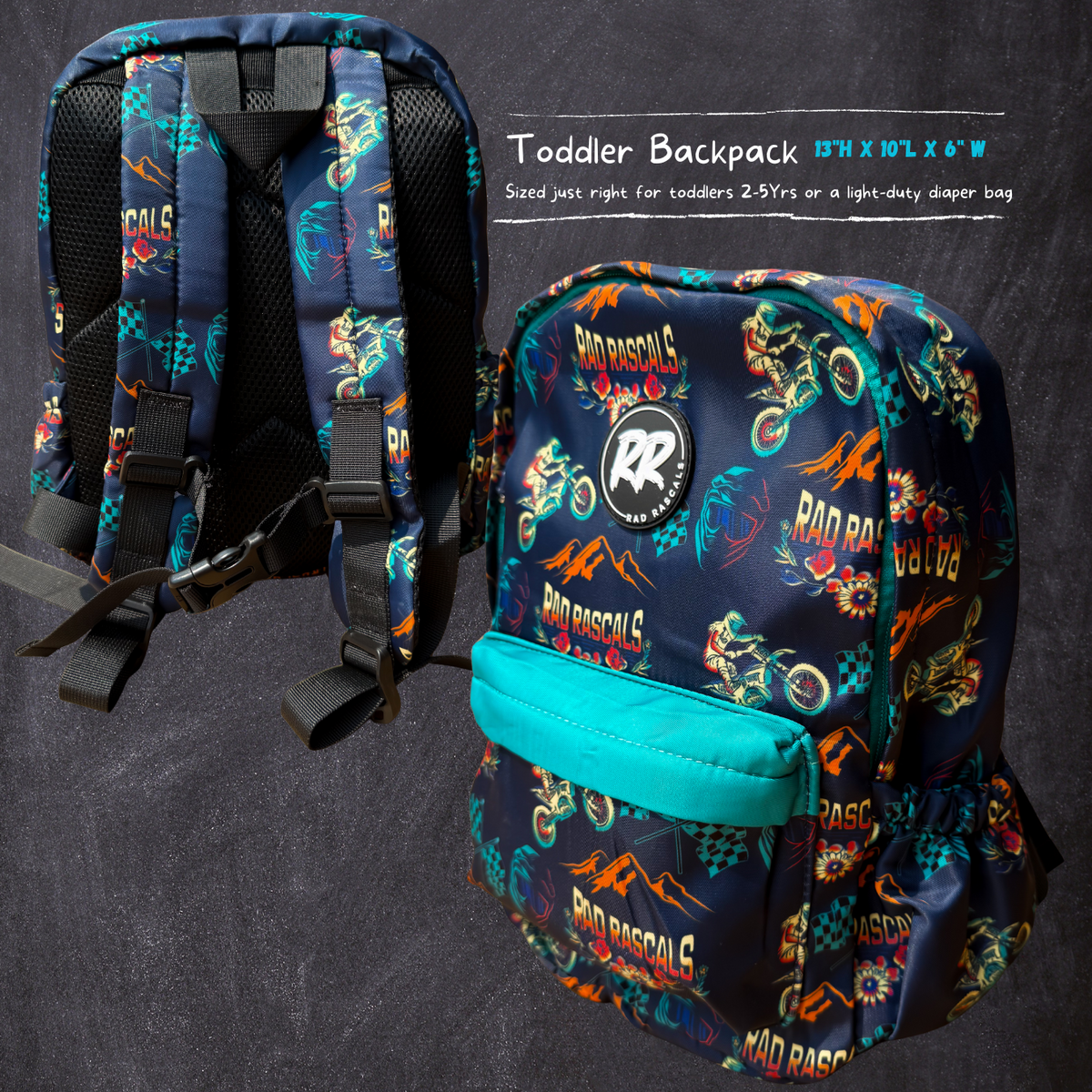 Toddler Backpacks: Built for little rippers and parents on the go, the Mini Moto Backpack is the ultimate grab-and-go companion. Whether you're packing snacks for the track or hauling diapers in style, this compact bag delivers big-time function in a kid-friendly size.