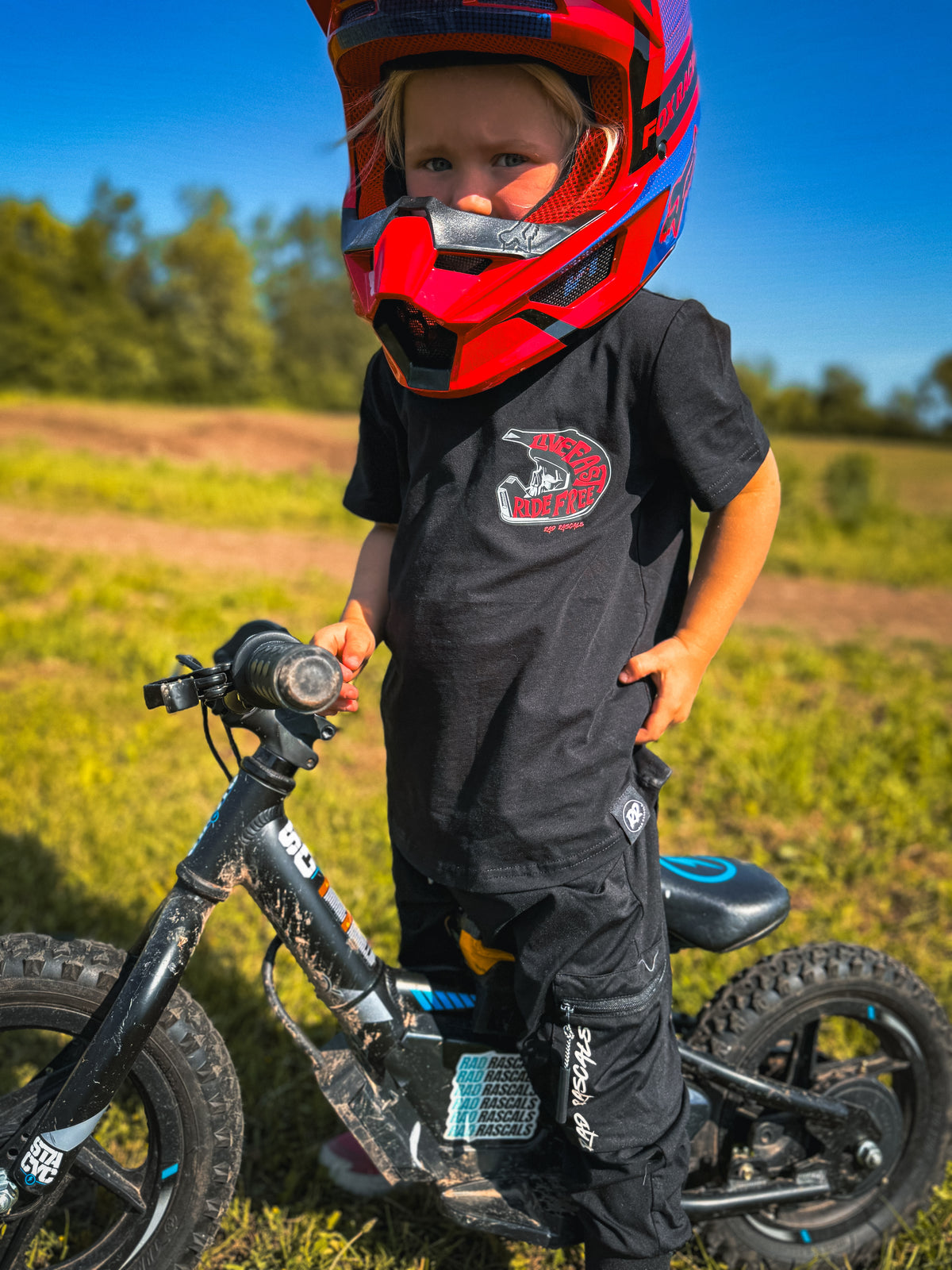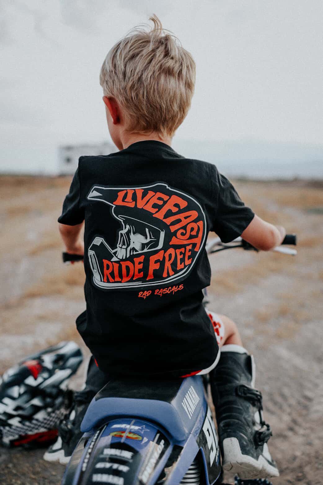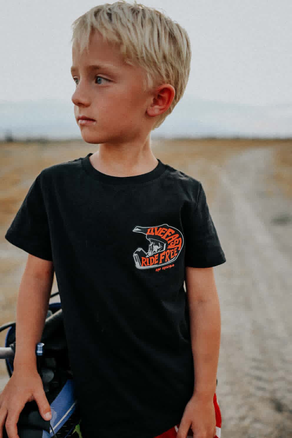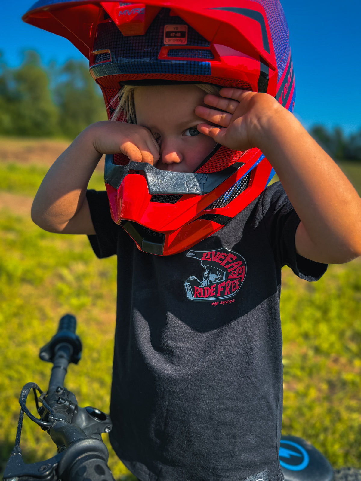 For the kid who dreams in dirt and lives for the ride — this tee is made to match their wild side. Featuring a bold motocross helmet graphic, a swing off of our best selling hoodie, it’s all about big energy, fast vibes, and fearless fun. Whether they’re tearing up the backyard or just showing it off at races, this shirt brings track-ready style to every day.