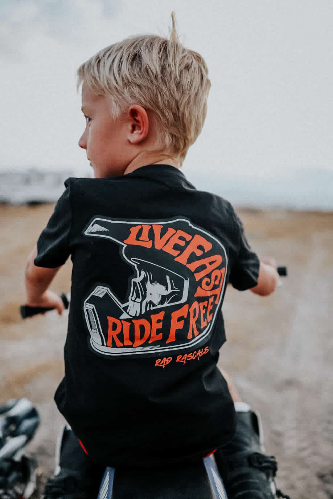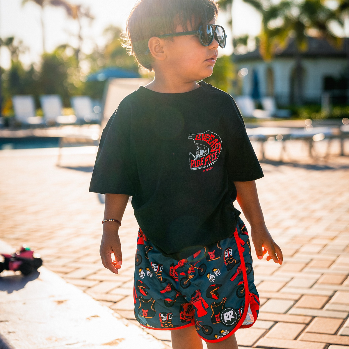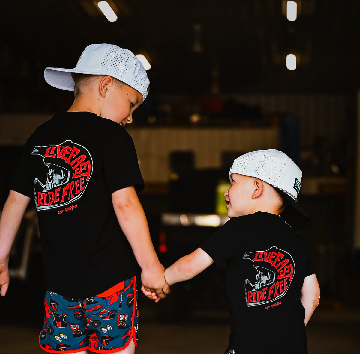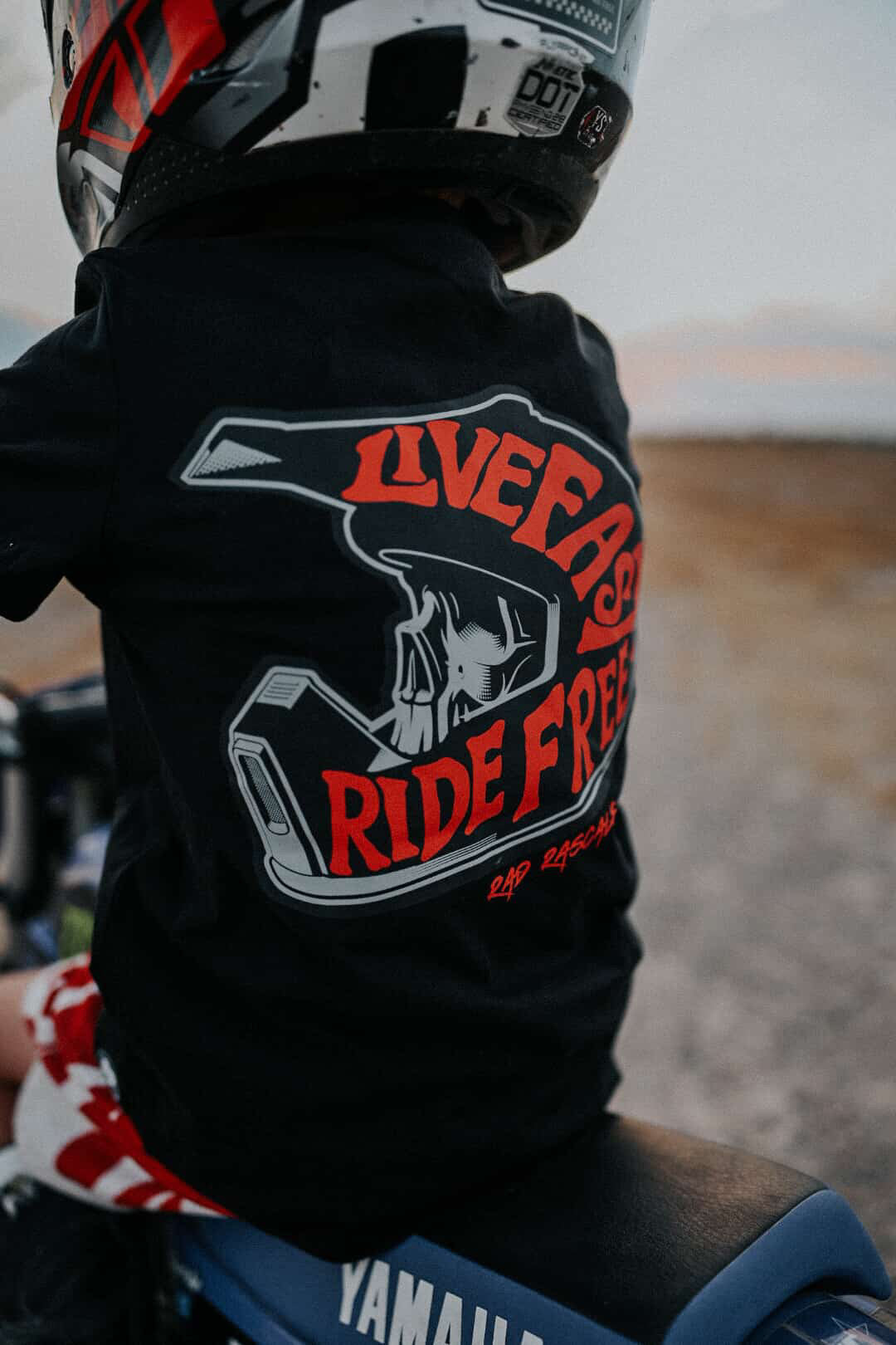 For the kid who dreams in dirt and lives for the ride — this tee is made to match their wild side. Featuring a bold motocross helmet graphic, a swing off of our best selling hoodie, it’s all about big energy, fast vibes, and fearless fun. Whether they’re tearing up the backyard or just showing it off at races, this shirt brings track-ready style to every day.
