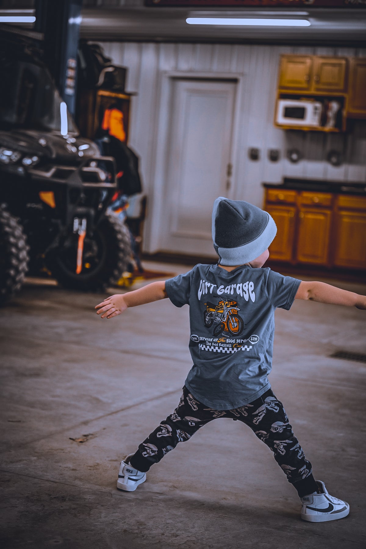 The Dirt Garage tee is inspired by late nights, dirty hands, and big dreams that start on concrete floors and turn into track days.
