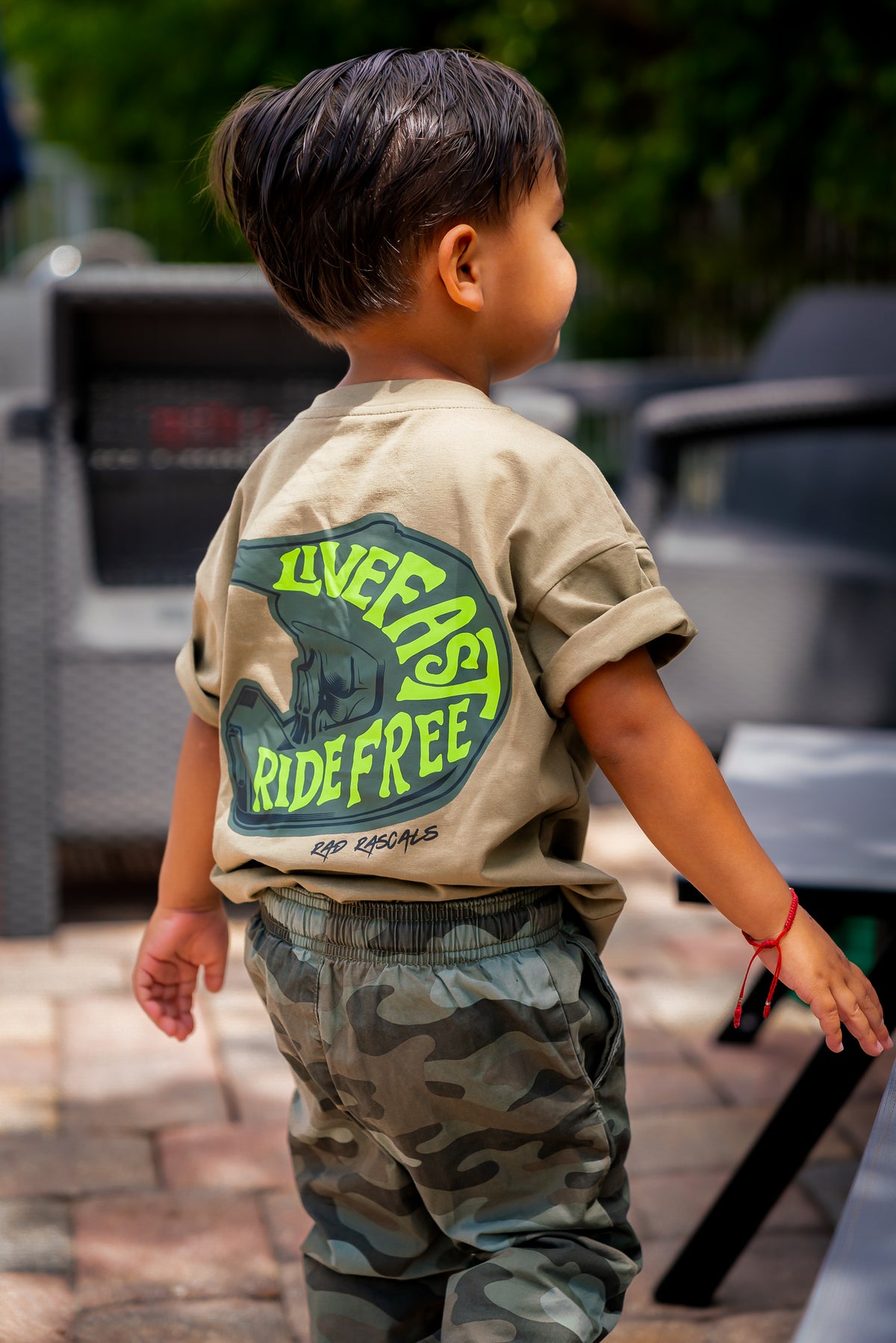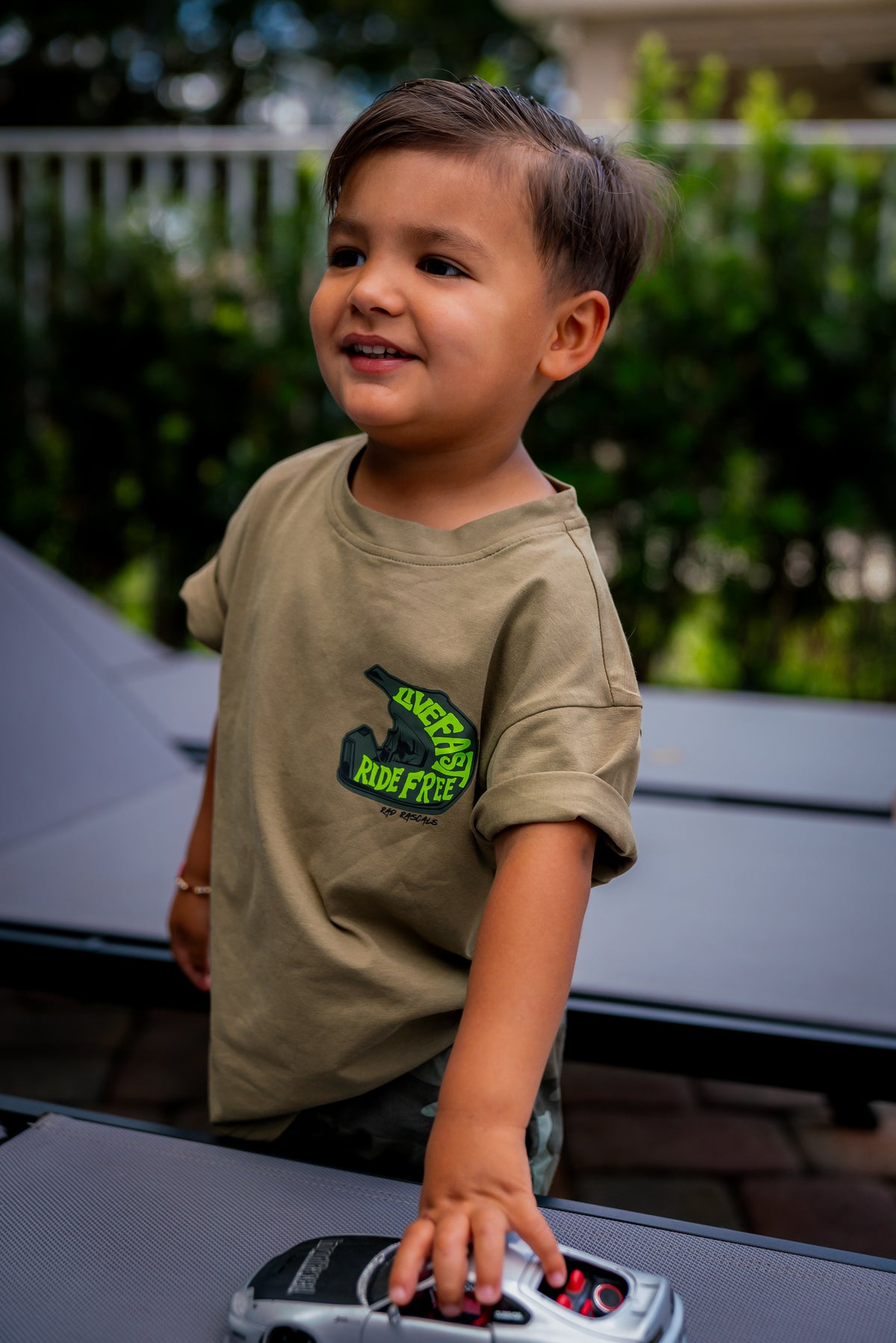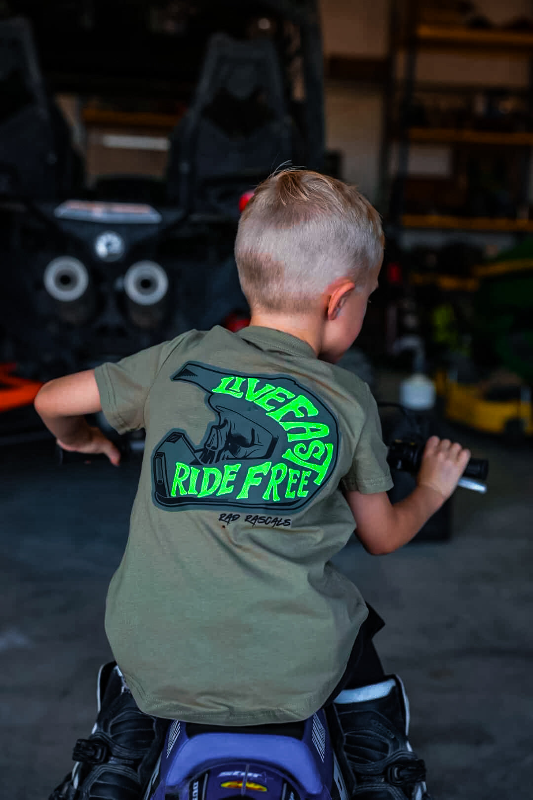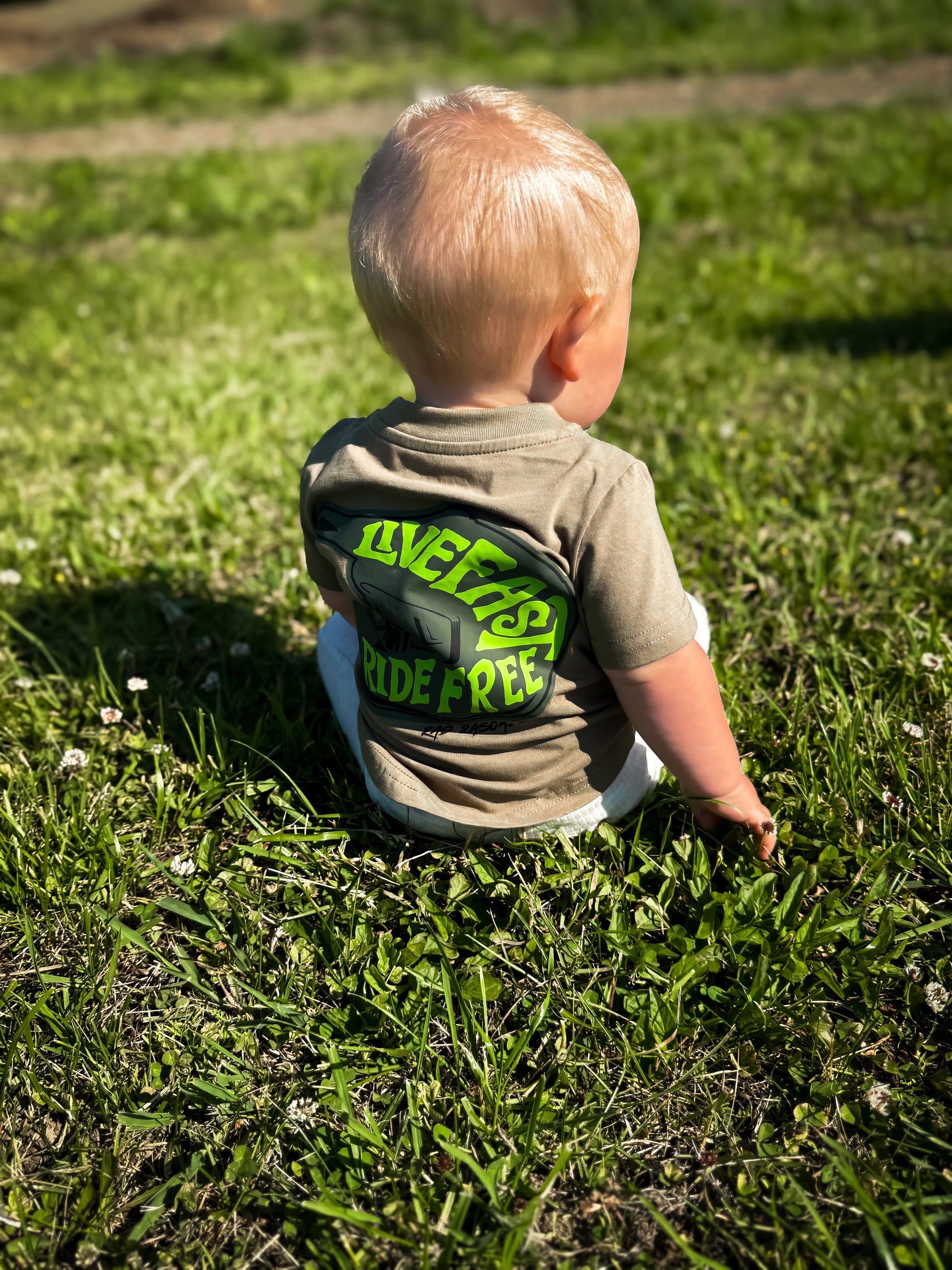 For the kid who dreams in dirt and lives for the ride — this tee is made to match their wild side. Featuring a bold motocross helmet graphic, a swing off of our best selling hoodie, it’s all about big energy, fast vibes, and fearless fun. Whether they’re tearing up the backyard or showing it off at races, this shirt brings track-ready style to every day.